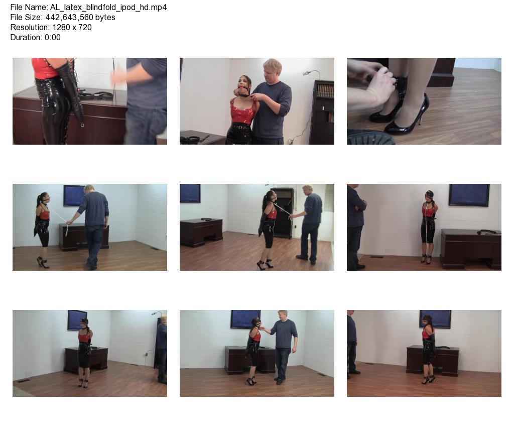 High Heels, Latex, Leather, Blindfold, Rope Bondage, Ball Gag, Collar and Lead, Leash, Armbinder, office domination, submission, latex, daydream, waist cincher, bun hair style, peep toe pumps, pantyhose, leather straps, scarf mouth stuffing, wide microfoam tape wrap, leather blindfold, left alone standing, balance issues, led on a leash, bondage