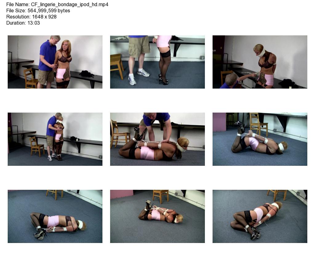 He left her on the floor of the office while he went and checked in with his clients. They were very happy with Crystal's tight bondage and gag and loved her sexy body. Crystal struggled around on the floor, mmmppfhing into the tight gag. Some time later, the Boss came back and told Crystal he had a request from one of his clients. He pulled Crystal's lacy bra down, revealing her breasts. He left her like that on display. She arched and grinded against the ropes, lifting her ass in the air. Every time she did so, she gave the clients a good look at her printed thong. The clients were pleased with Crystal's struggling even tho she wasn't happy about being put on display for them